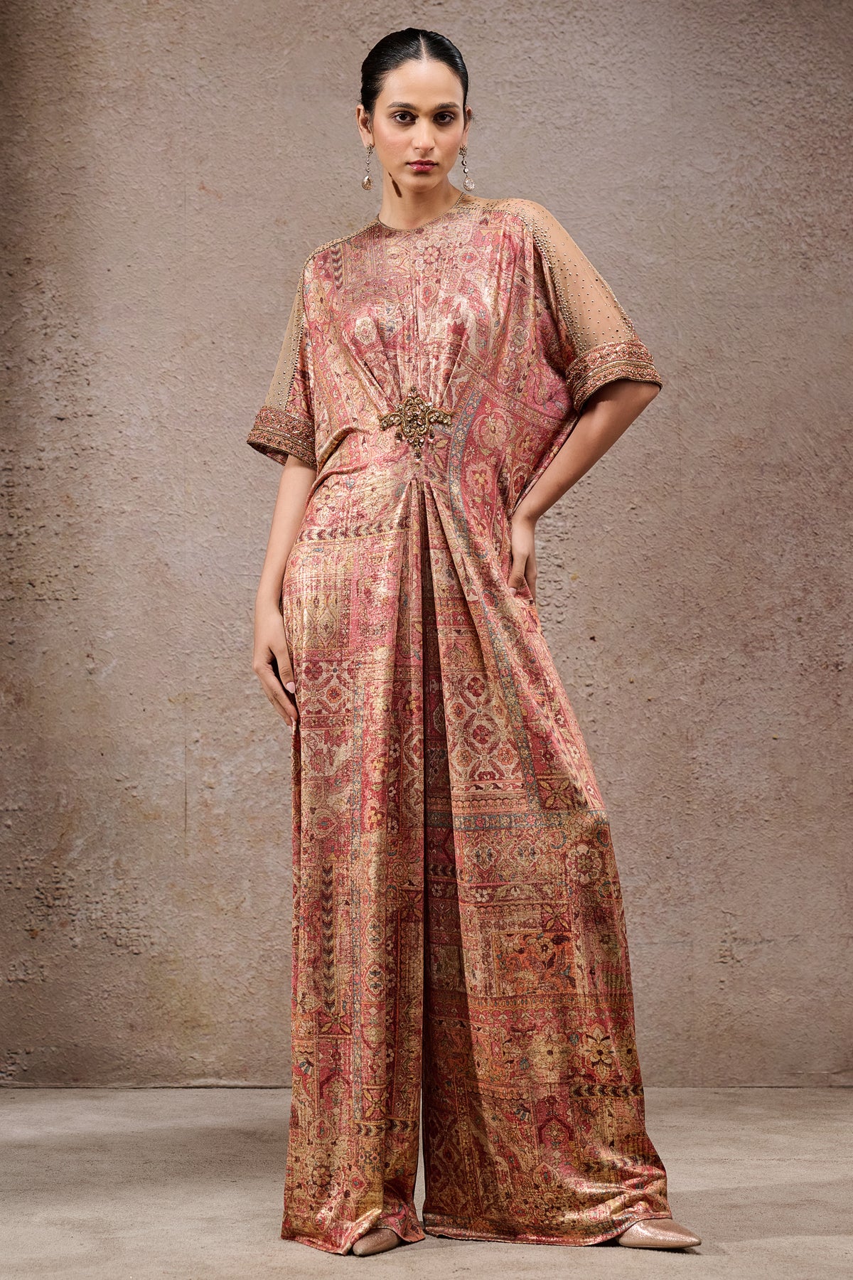 Classic draped dress with brooch Sale priceINR. 42,000