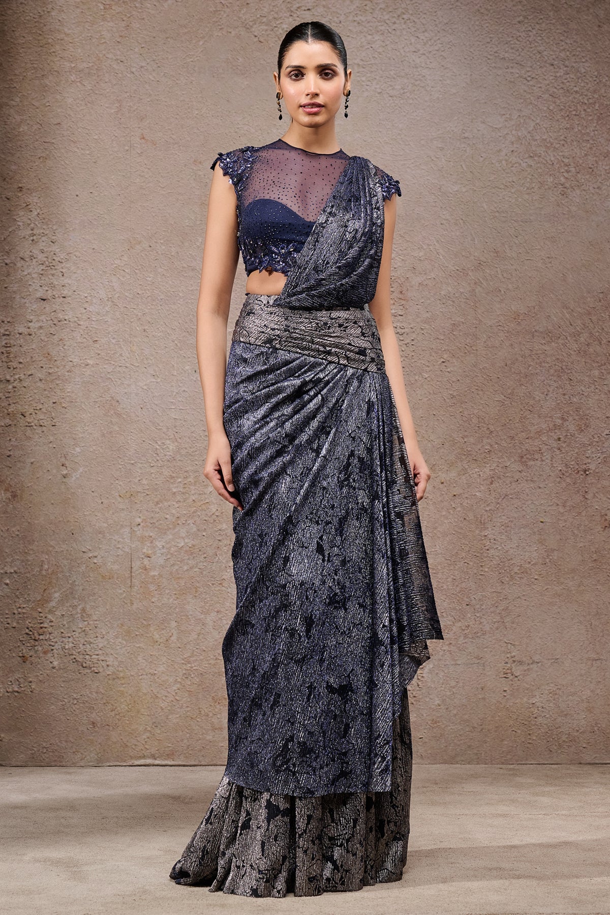 Concept Saree with Sequin Embroidered Corset BeltConcept Saree with Sequin Embroidered Corset Belt