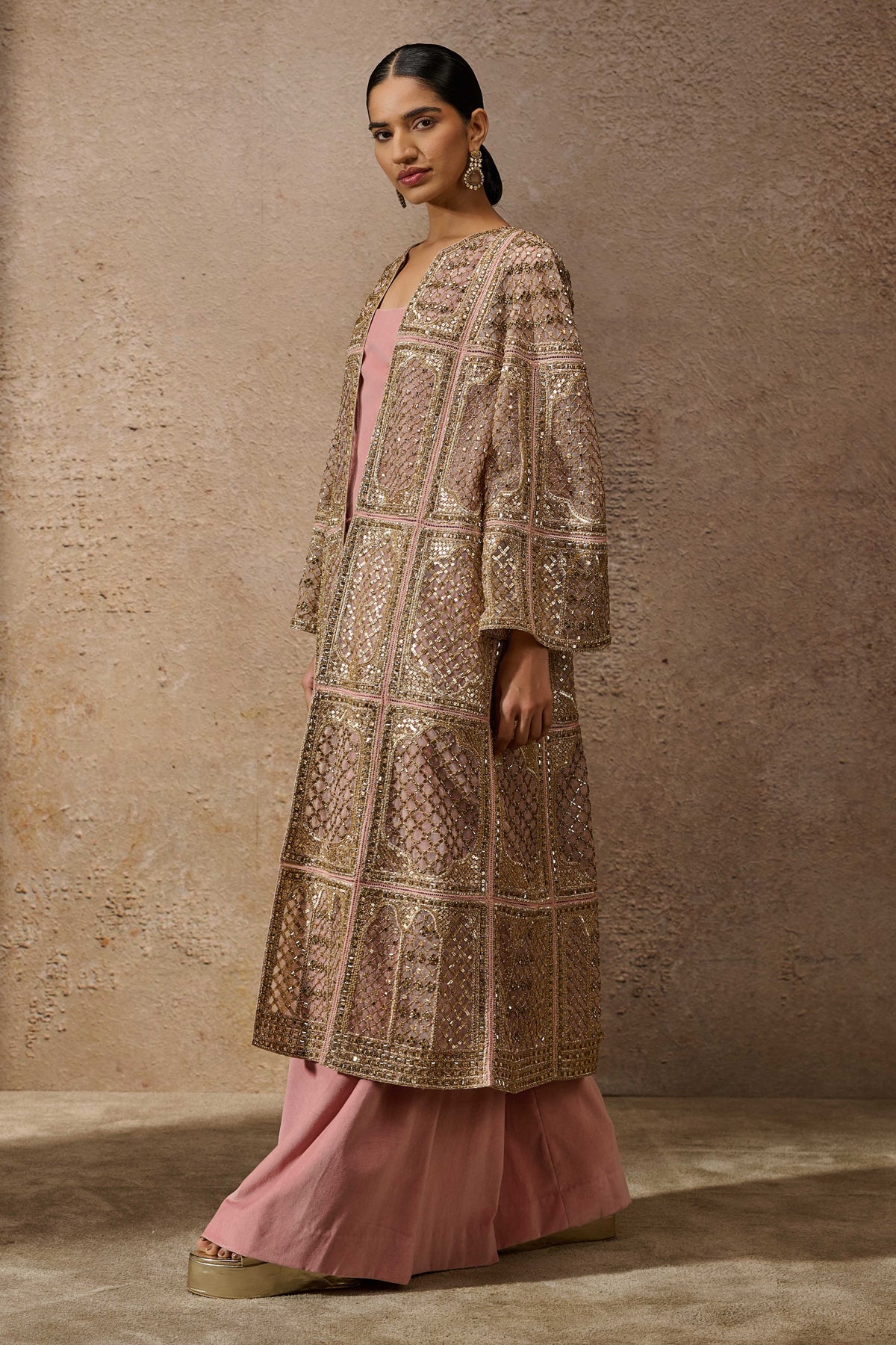 Resham Embroidered Jacket And Lace Pants Co Ord Set