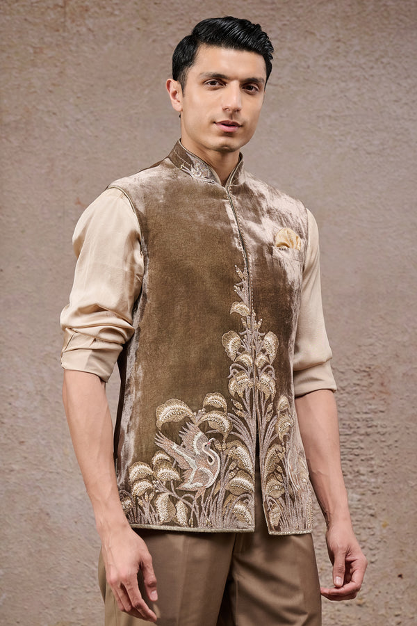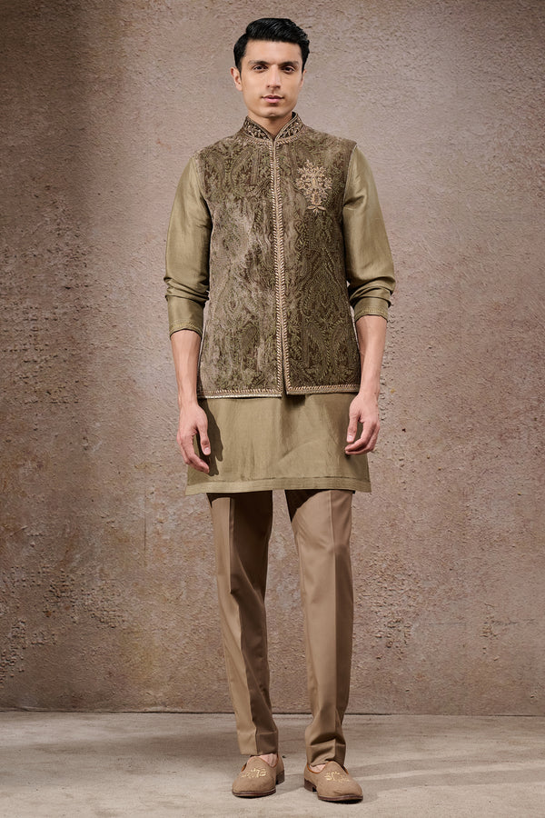 Tonal Zardozi Brooch Waistcoat SetTonal Zardozi Brooch Waistcoat Set