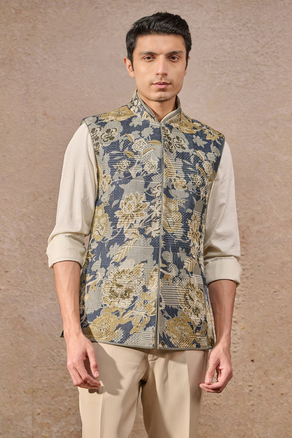 Hand Embroidered Floral Motif WaistcoatHand Embroidered Floral Motif Waistcoat