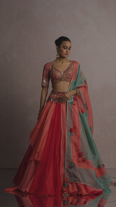 - FABRIC: Blouse : Shot Organza/Dupatta : Shot Organza/Lehenga : Shot Organza