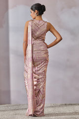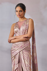 Abstract gemoteric print foil jersey concept saree paired with a crystal