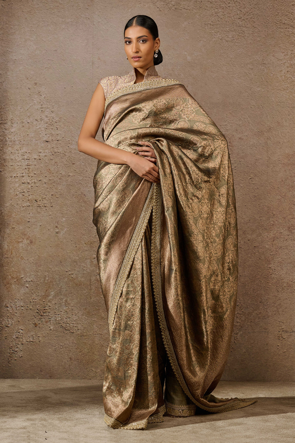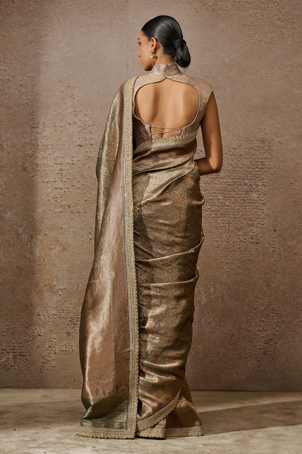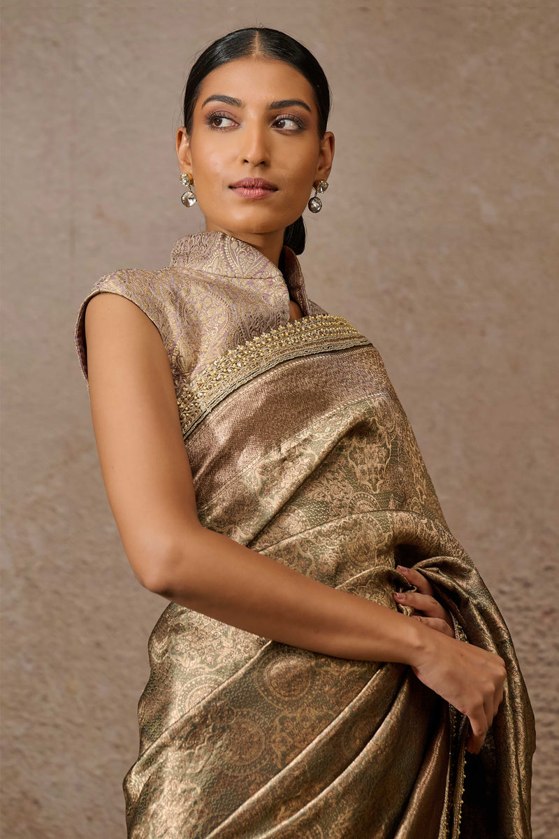 Handwoven brocade classic saree featuring a medallion motif and dori border, is complemented by a matching blouse fabric.