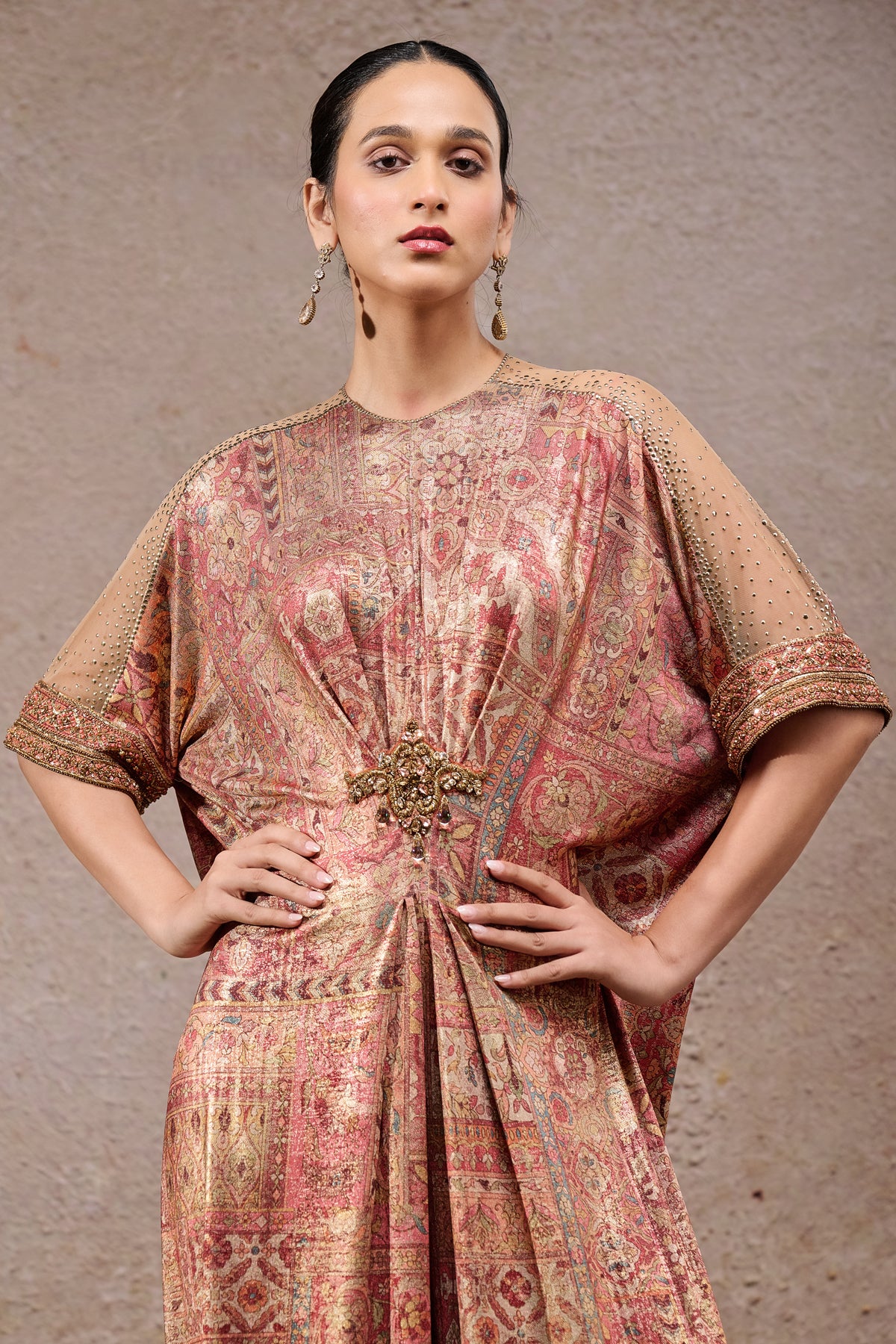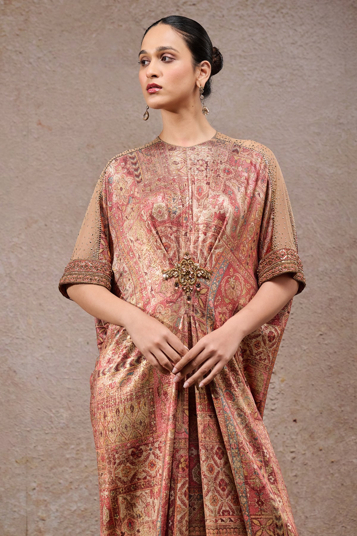 Printed Jumpsuit Accented With A Hand-Embroidered Border And A Statement Brooch
