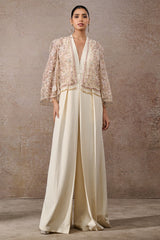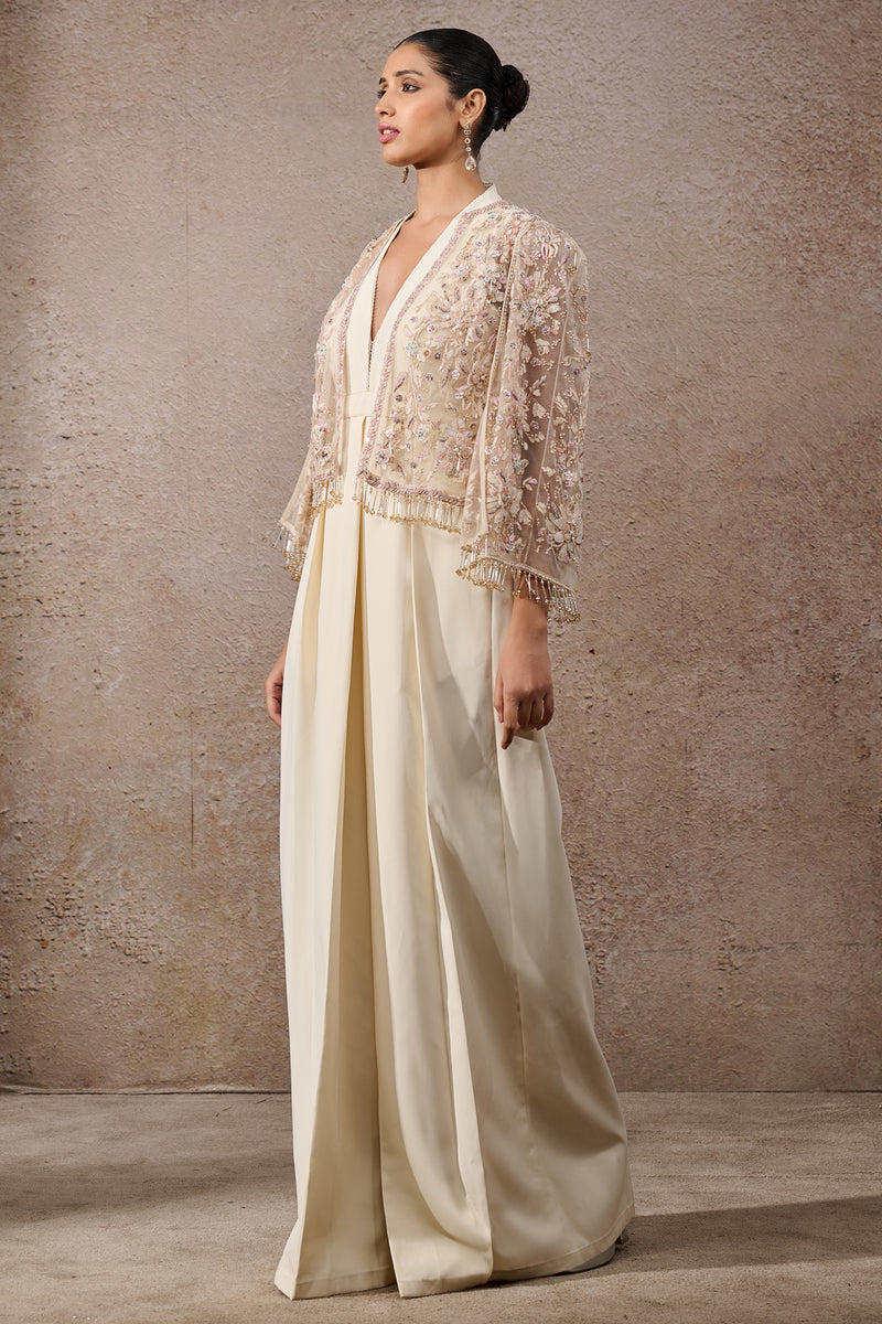 Classic Floral Hand-Embroidered Cape Accentuated With Tassels.