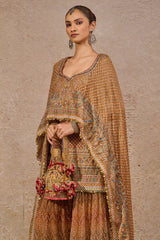 Hand-embroidered Kashida kurta with front cape wing details paired a complementing threadwork sharara