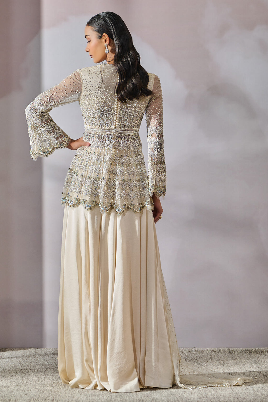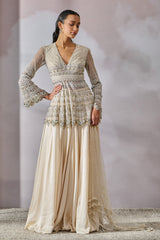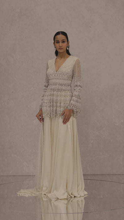 Hand embroidered peplum jacket accentuated with Swarovski crystals and