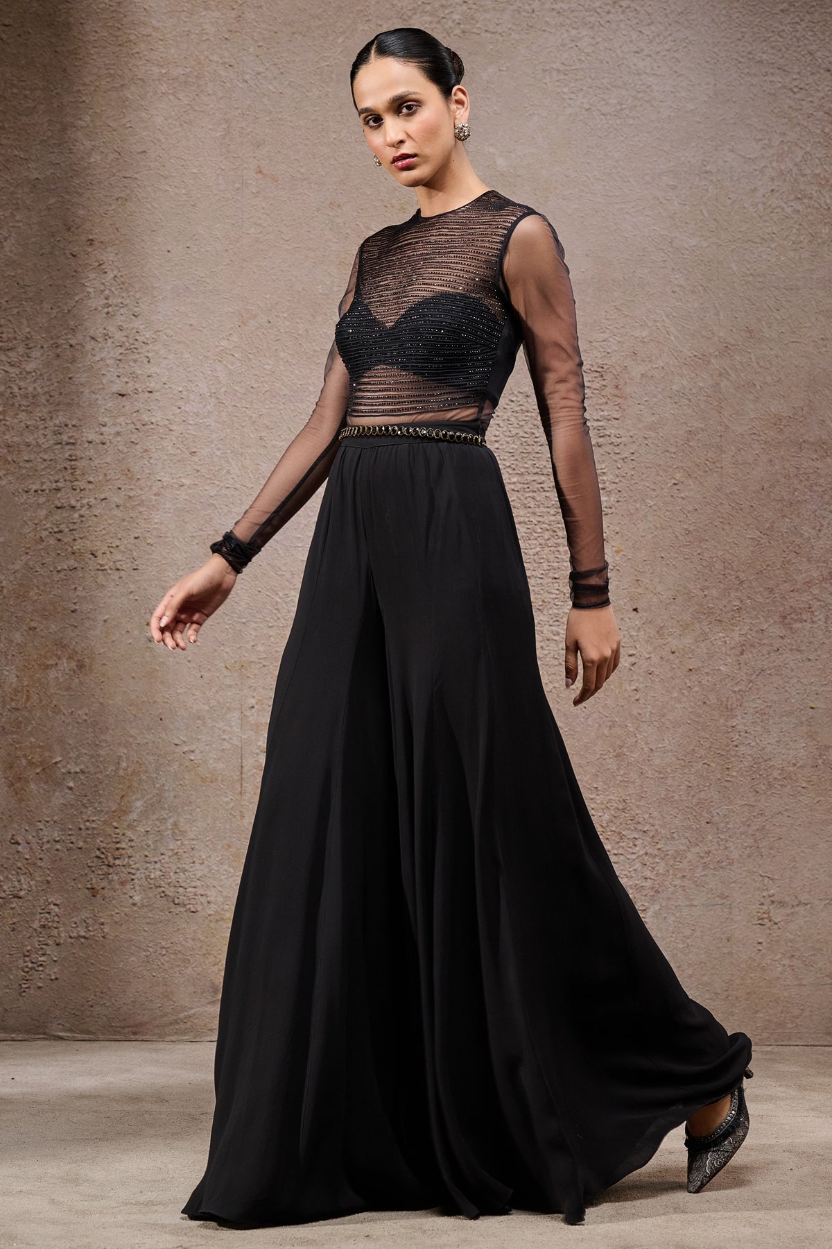 - Materials : Cape - Mukaish Fabric | Bodysuit - Tulle Net | Trouser - Georgette | Bustier - Georgette