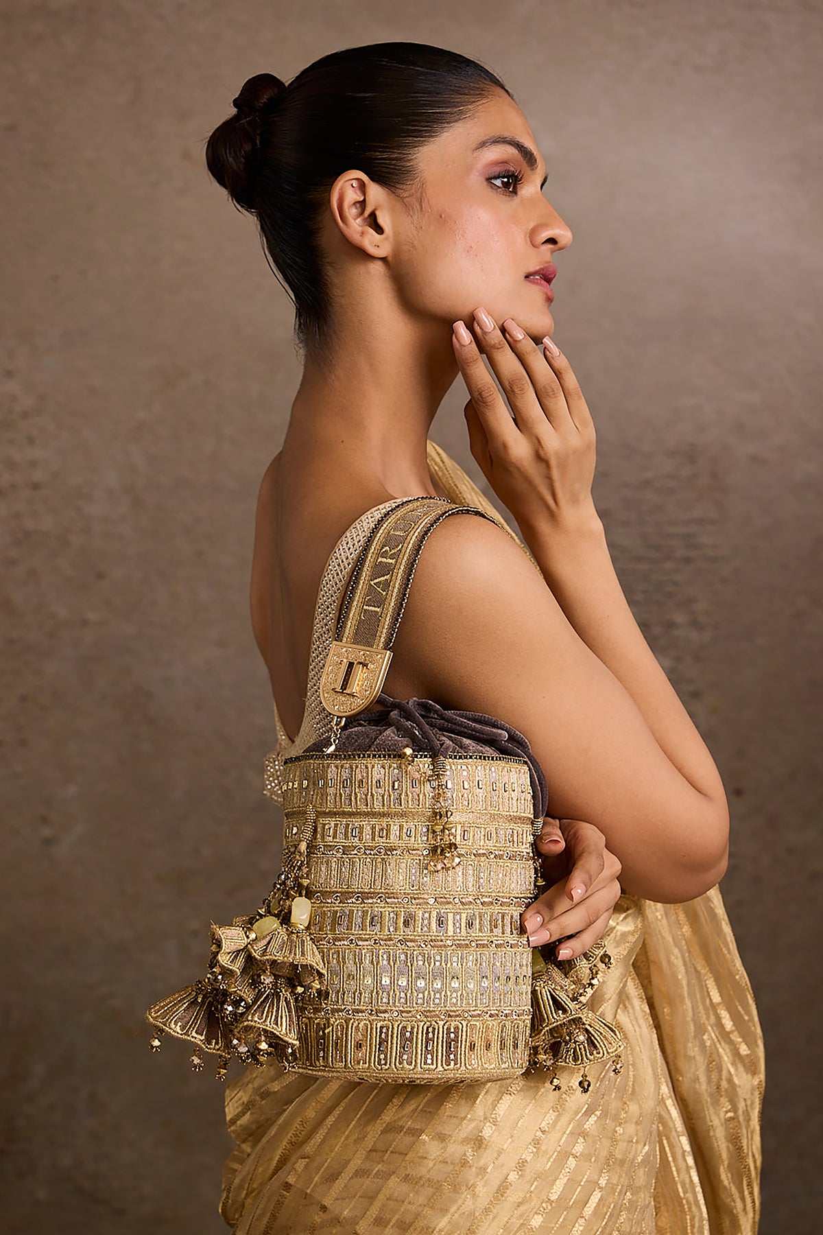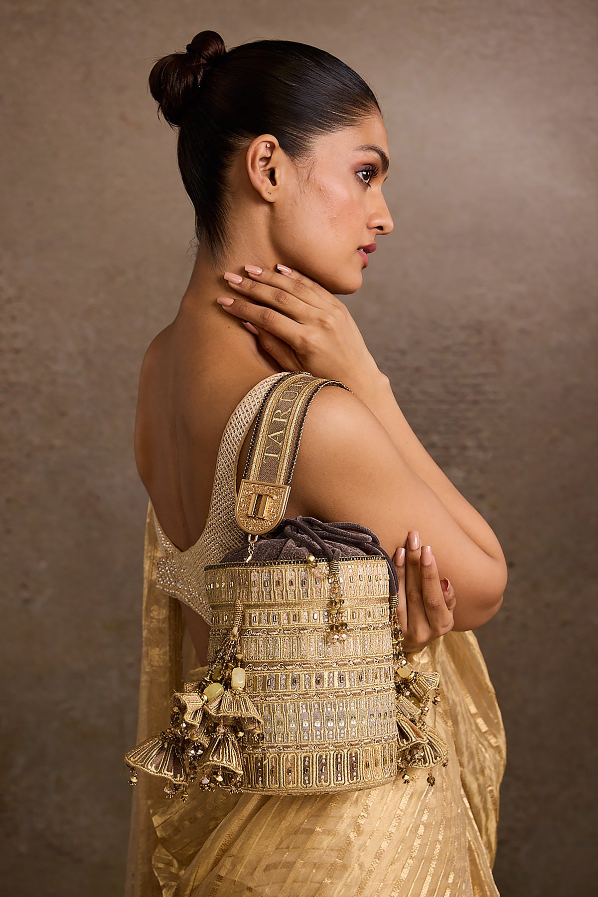 - Materials: Tt Strap Embroidered Handle, Poly Organza, Velet, Brass Metal Hardwares
