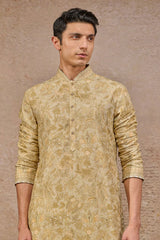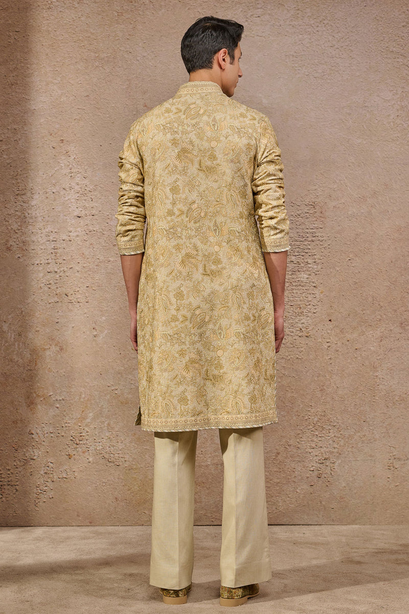 Textured printed kurta featuring threadwork embroidery on floral motifs