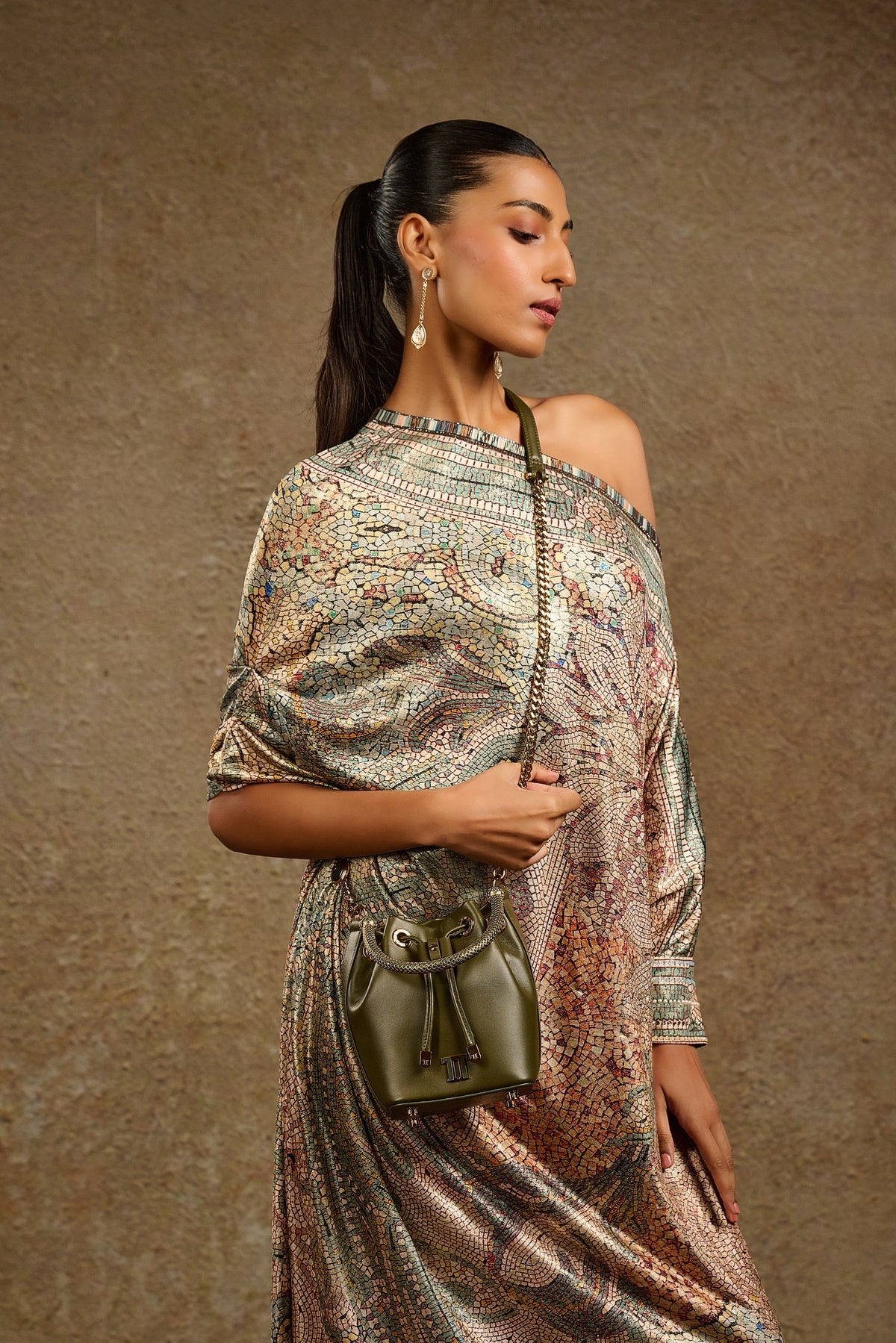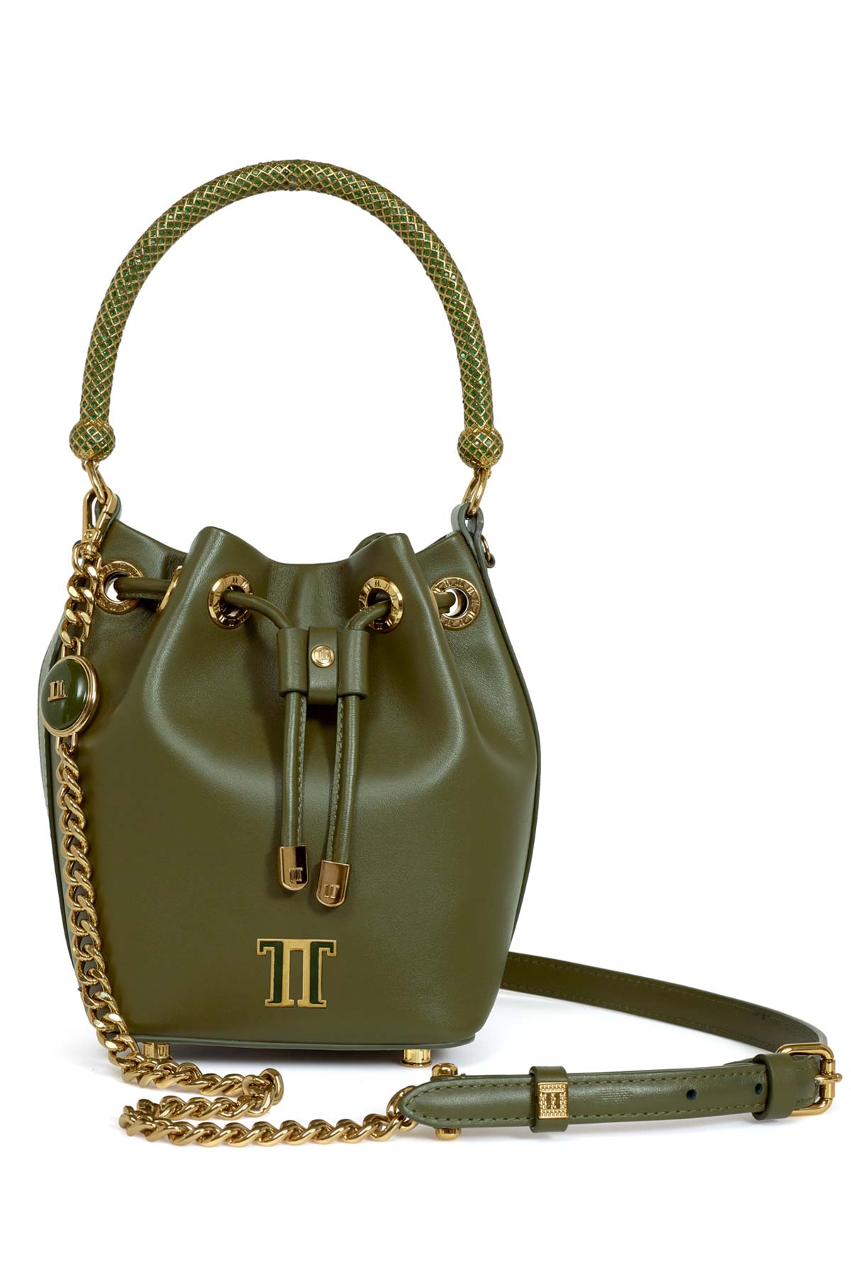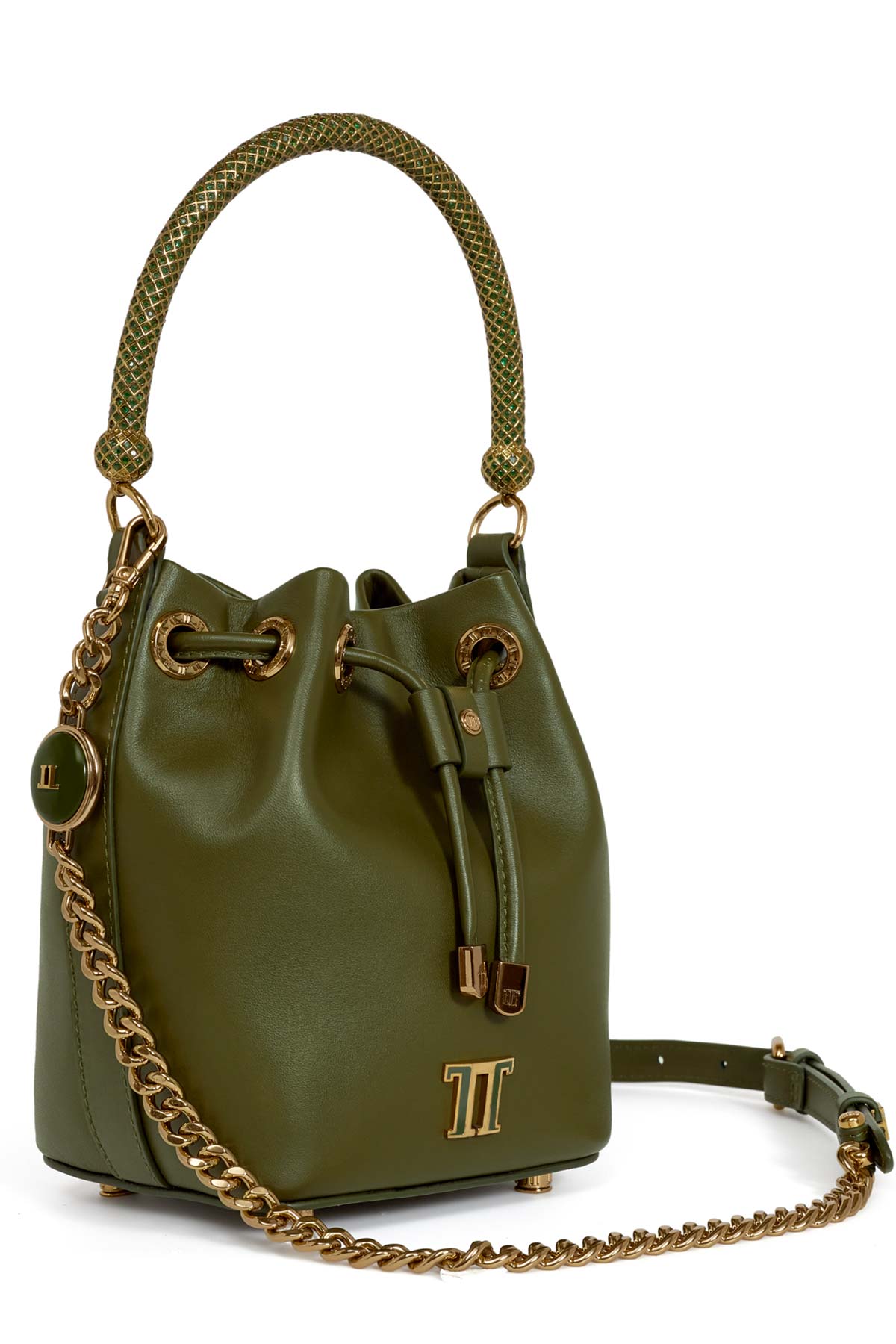 Classic Leather Bucket Bag, With A Structured Metallic Finish Handle, Fluid Chain Strap And Leather Strap, Featuring A Tt Metallic Logo And A Tt Charm Tassel