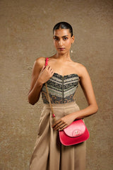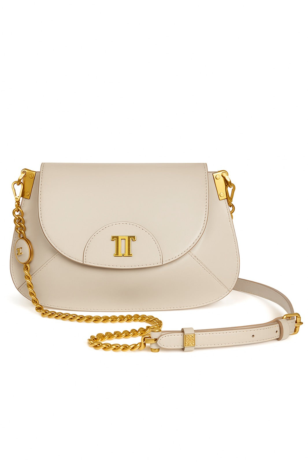 Leather Sling Bag With A Chain Strap And A Tt Monogram And Charm
