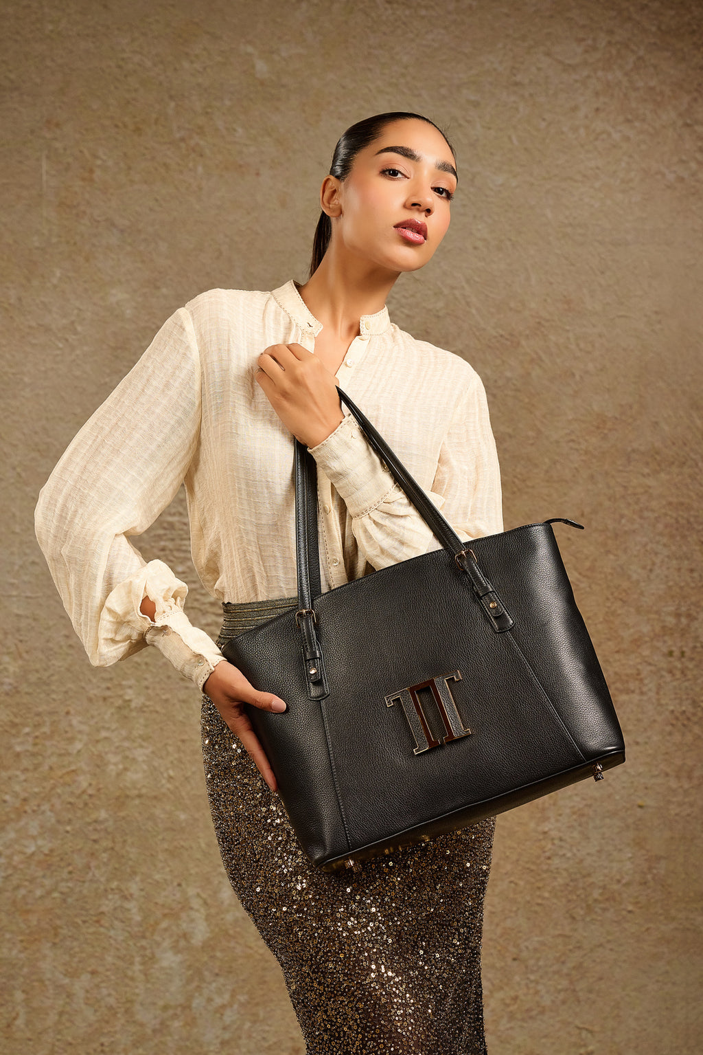 Classic Carry-All Leather Tote Bag With A Three-Dimensional Tt Monogram