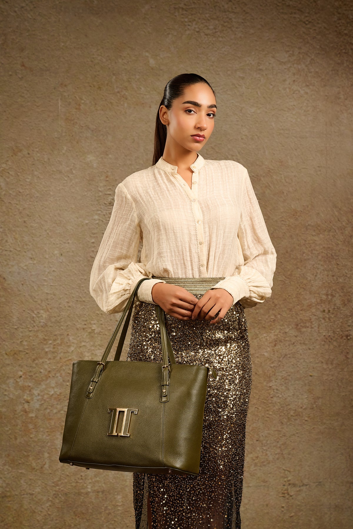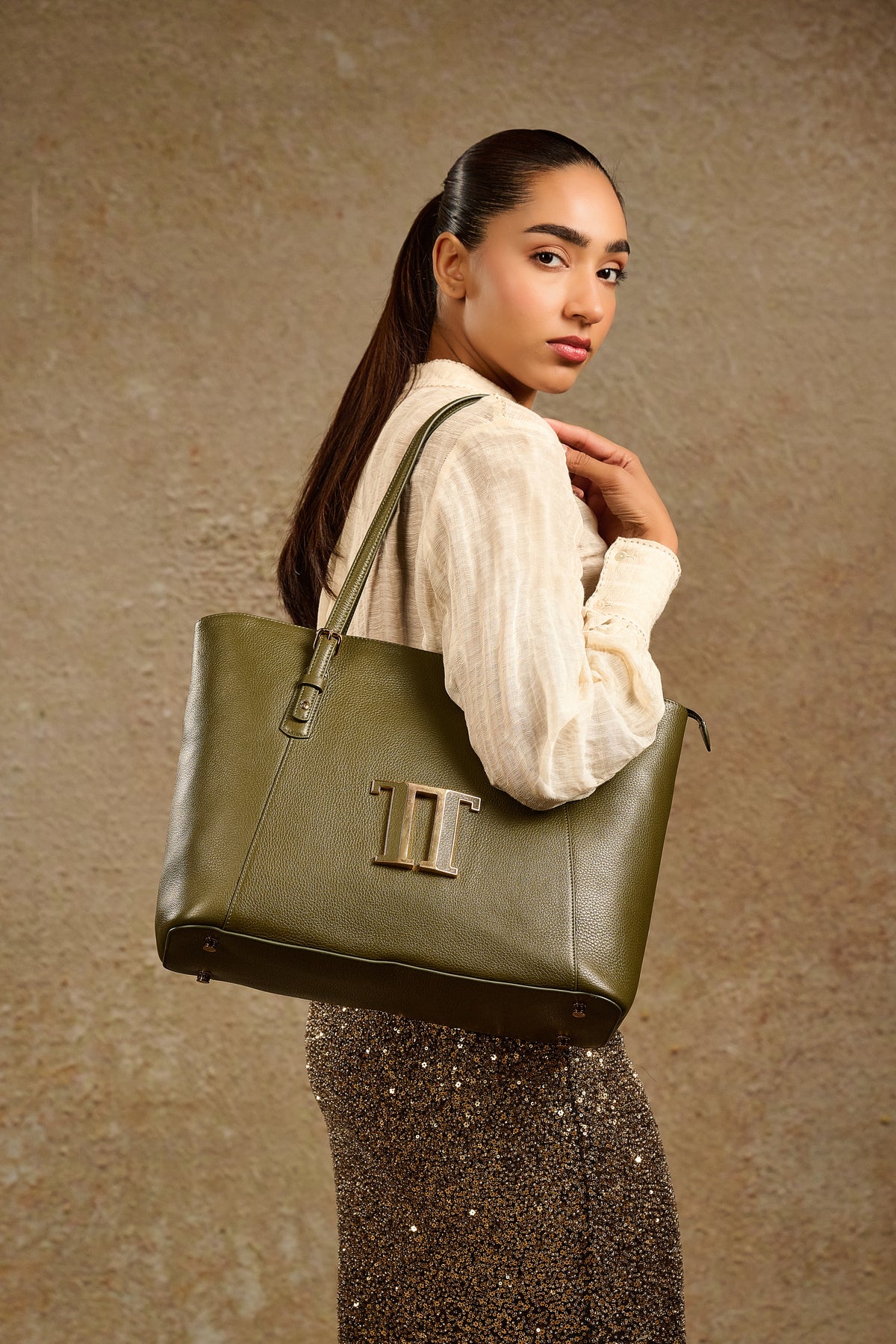 Classic Carry-All Leather Tote Bag With A Three-Dimensional Tt Monogram
