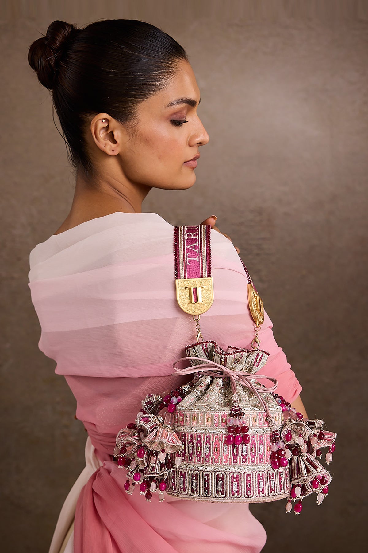 Zari And Resham Embroidered Festive Potli With Sequin Detailing, Tassels And Tt Monogrammed Base