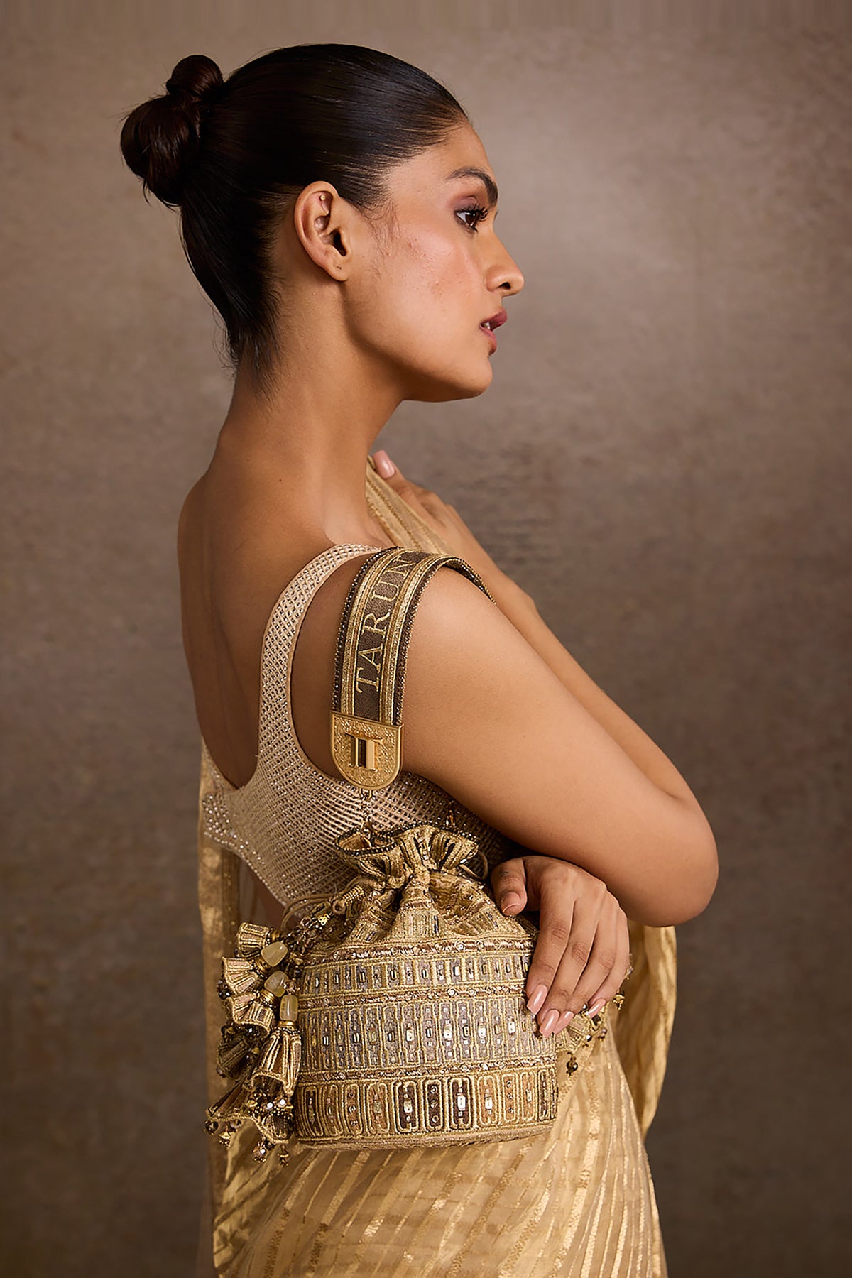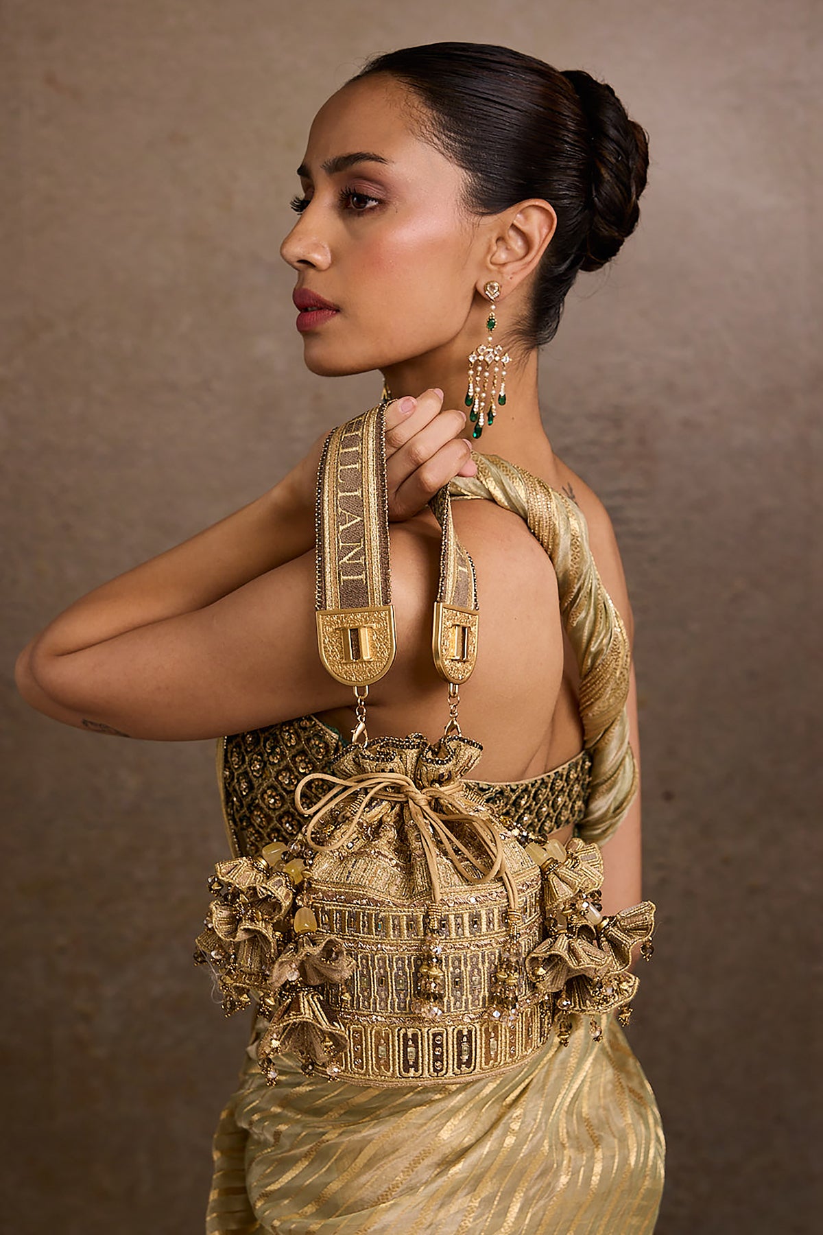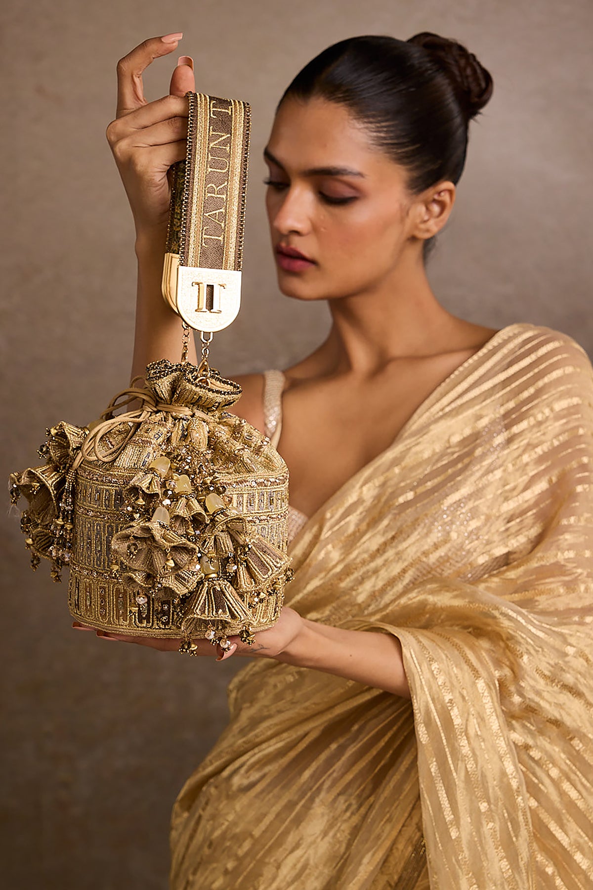 Zari And Resham Embroidered Festive Potli With Sequin Detailing, Tassels And Tt Monogrammed Base